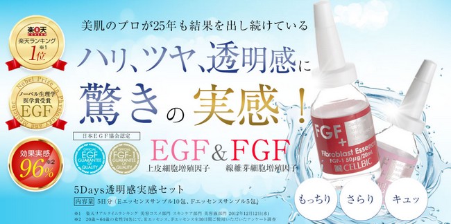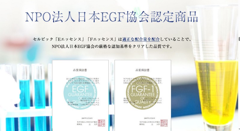 2)「日本EGF協会認定の数少ないEGF、FGF美容液」