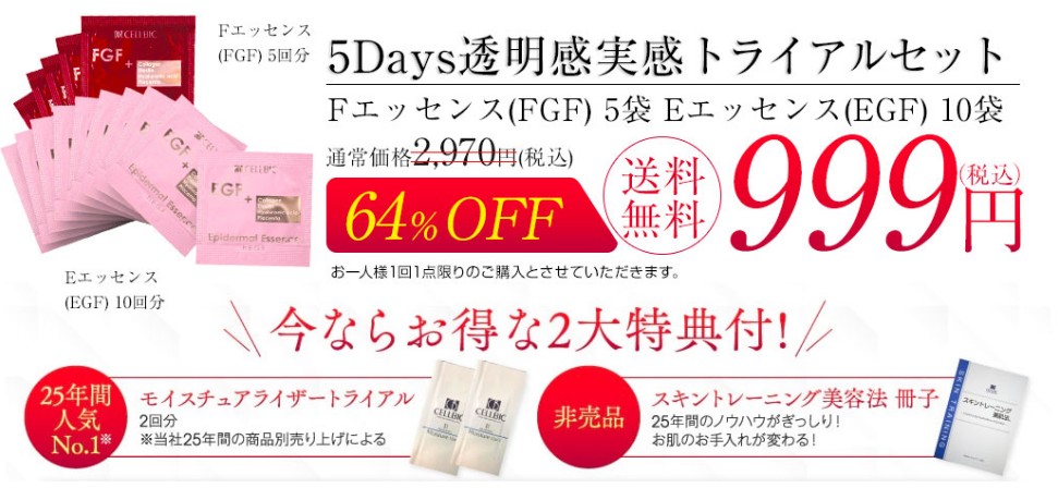 セルビックEGF・FGF美容液 の[5days] 999円お試しセットです。
