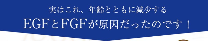 これらはもともと人間が持っている因子で、体の中で形成されるタンパク質であり、肌や唾液・母乳などに多く含まれているものですが、加齢と共にEGFとFGFが足りなくなっていくのです。