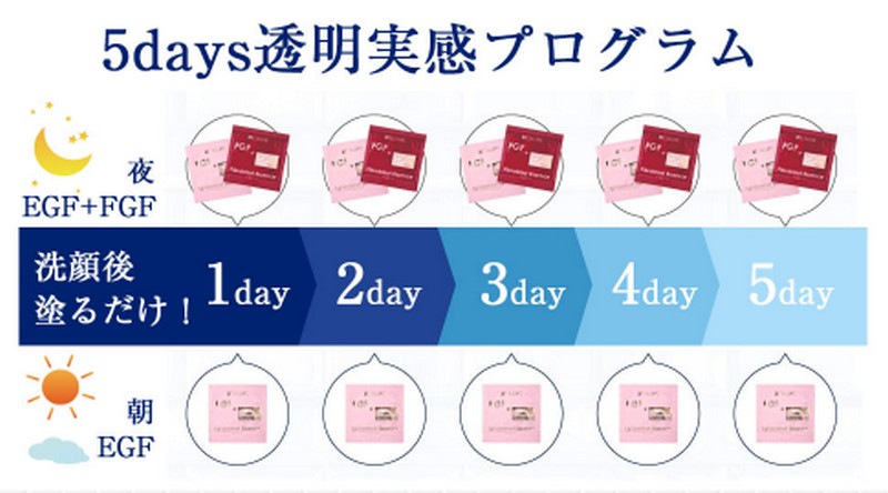 5日間の使い切りのお試なので、お肌のハリ・ツヤ・透明感が気になっている方におススメです。