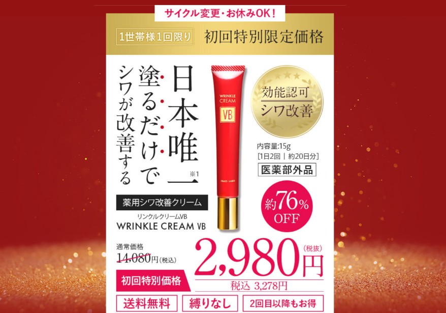 【リンクルクリームVB】が76%OFFで購入できるのはこのサイトだけ