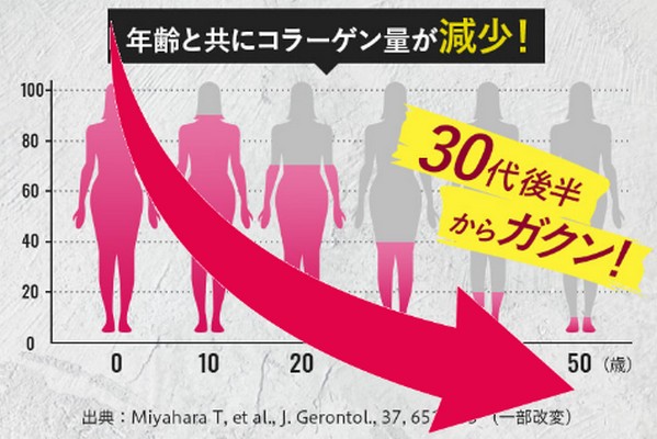 深いシワが増える原因は、加齢に伴う コラーゲン不足 です。