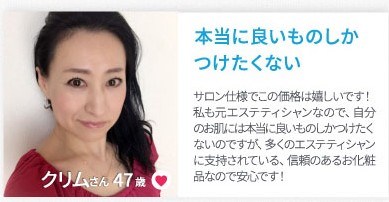 「敏感肌なので新しい化粧品は不安でしたが、ヒリつきもなく使えました。しっとりするのに重くなく、大人の肌にちょうどいい使い心地です。」
