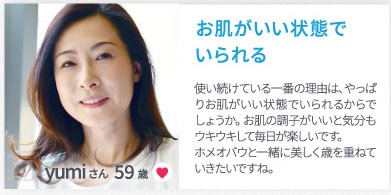 「年齢とともに乾燥がひどくなっていましたが、ホメオバウを使い始めてから肌が落ち着いてきました。刺激を感じることもなく、毎日安心して使えています。」
