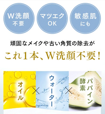 - W洗顔不要なので、夜のスキンケアが楽になった