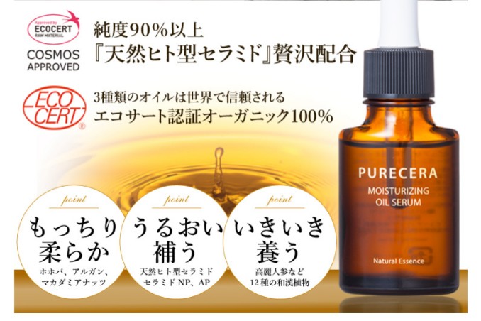 天然ヒト型セラミド高配合【ピュアセラ美容オイル】の成分と効果は ?