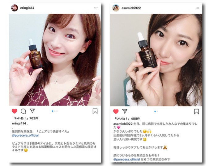また、ピュアセラ美容オイルは「セラミド」をオイルに配合しているので潤いを実感しやすいのが特徴です。