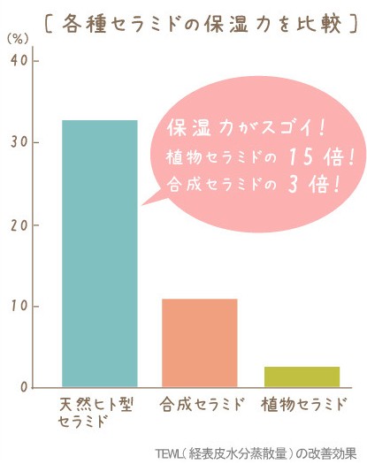 数あるセラミドの中でも「天然ヒト型セラミド」の保湿力は、植物セラミドの15倍と圧倒的に高いのです。