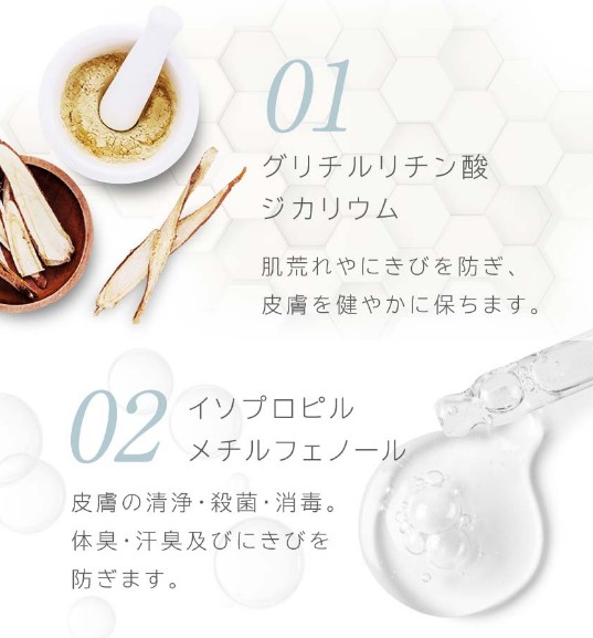 (グリチルリチン酸ジカリウム、イソプロピルメチルフェノール)を使用しています。