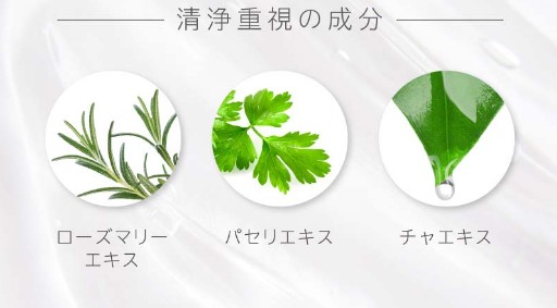 有効成分以外にも、ローズマリーエキスや豆乳発酵液などの清浄重視の成分・整肌