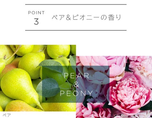『ヴィード クリアジェル』は、ペア(西洋ナシ)の爽やかで甘い香りと、ピオニー(芍薬)